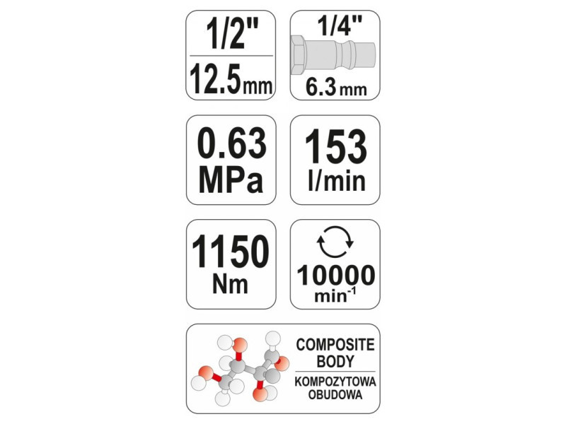 1/2" 1150 Nm-es pneumatikus kulcs a YATO-tól.