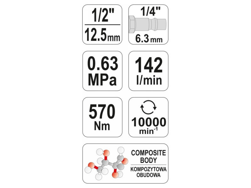 • Maximális forgatónyomaték 570 Nm lehetővé teszi a legmakacsabb csavarok és anyák könnyű kinyitását