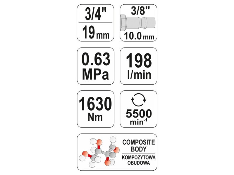 YATO Pneumatikus ütvecsavarozó 3/4" 1630 Nm