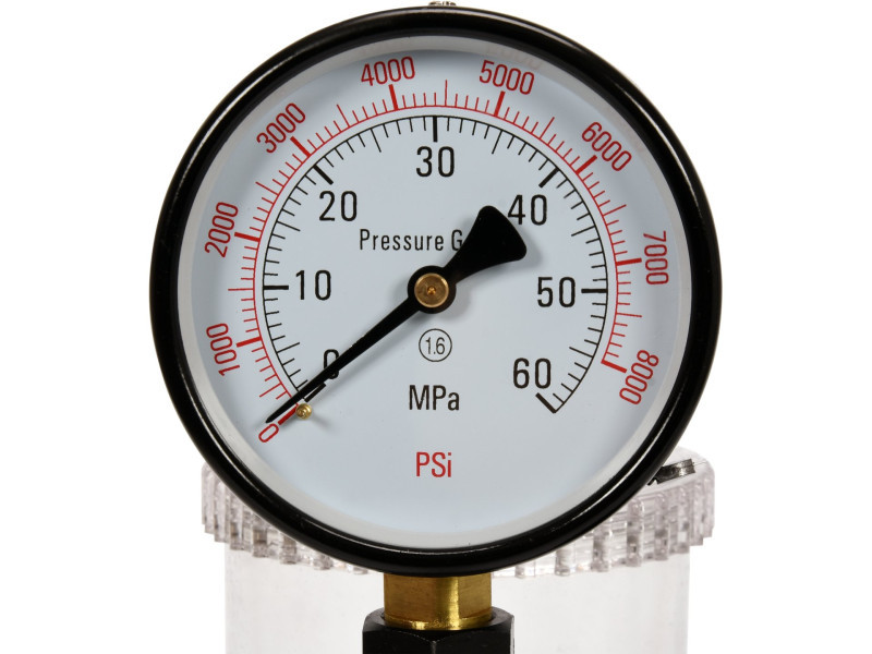 - Könnyen leolvasható nyomásmérő bar és psi egységekben kifejezett skálával