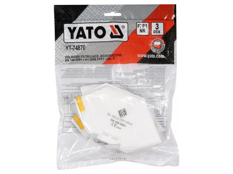 Védje légzőszerveit a YT-74870 szűrő félálarcokkal. Az FFP1 védelmi osztály hatékony gátat képez a porok és aeroszolok ellen.