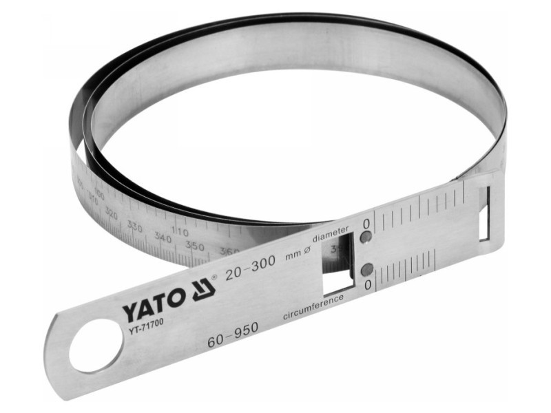Rozsdamentes acélból készült precíziós szalag az átmérő és a kerület mérésére (mindkét eredményt egy méréssel kapjuk meg).