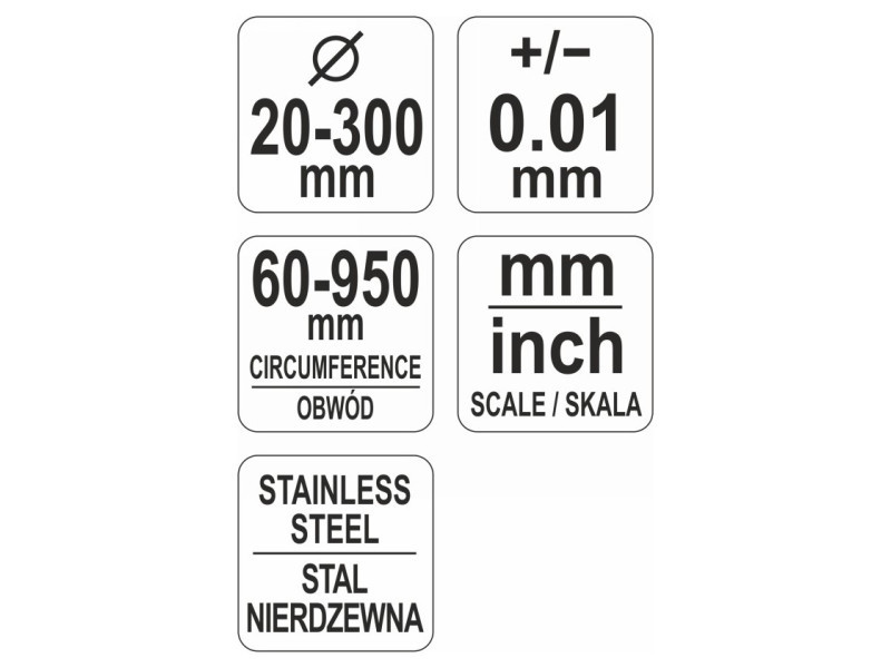 - átmérő mérési tartomány: mm: 20 - 300 mm