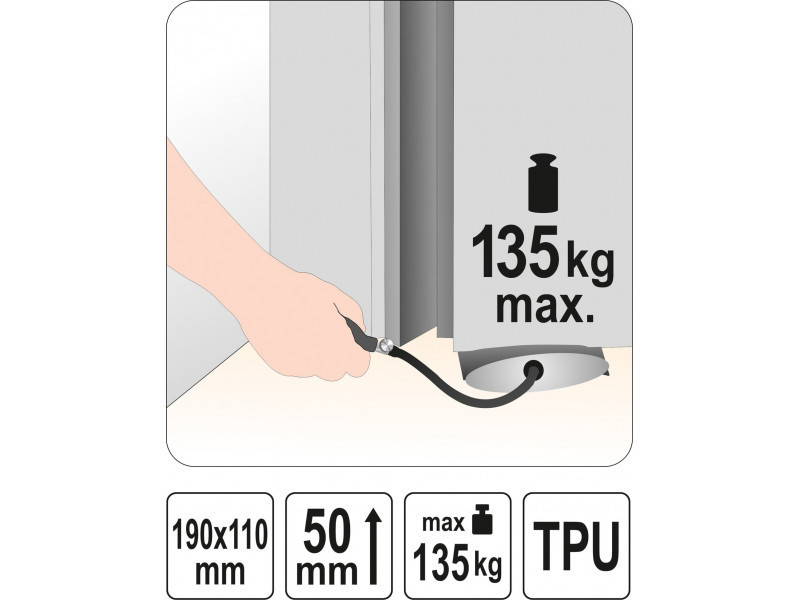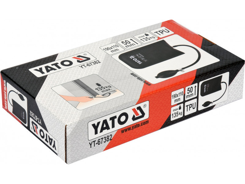 Nehéz munkadarabok pozicionálásához kb. 135 kg súlyig. Könnyű mozgatáshoz / emeléshez, mozgatáshoz, szintezéshez / pl. bútorok, ablak- vagy ajtókeretek, mosógépek, hűtőszekrények, alkatrészek és készülékek különböző műszaki munkáknál. Helyezzen egy üres / kb. 2 mm vastagságú párnát a kívánt pozícióba zárja be a vezérlőszelepet, és a tömlő végén lévő szivattyú segítségével nyomjon levegőt a párnába, amitől az megduzzad és mozgatja a tárgyat. A párna kihúzásához forgassa el a szelepet, miközben fokozatosan engedi ki a levegőt.