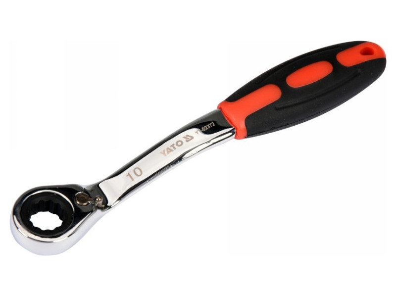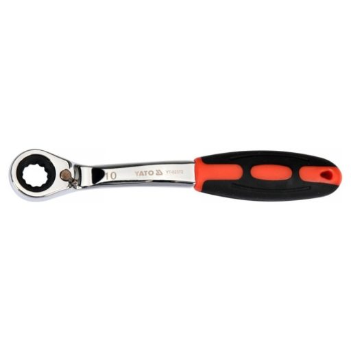 Kattancsos kulcs racsnival és hajlított profillal csavarok lazításához, autóipari szervizekhez ajánlott.