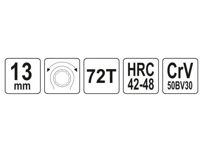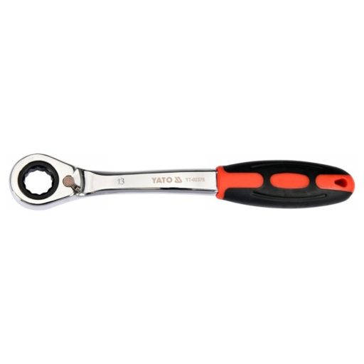 Kattancsos kulcs racsnival és hajlított profillal csavarok lazításához, autóipari szervizekhez ajánlott.