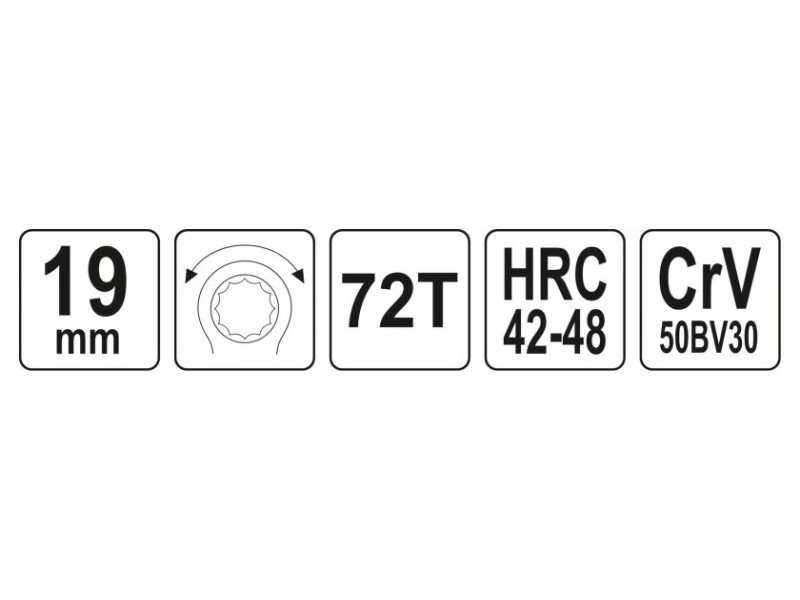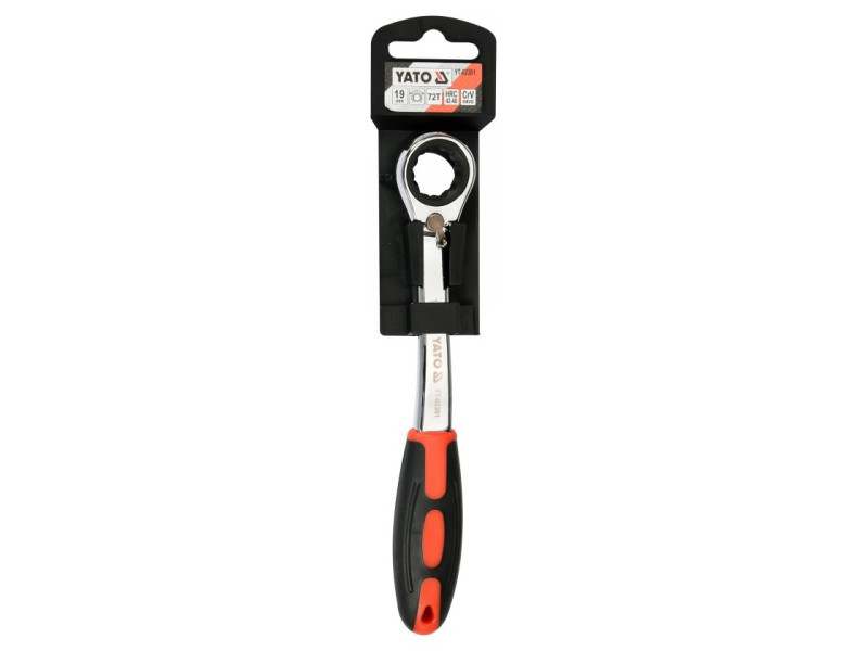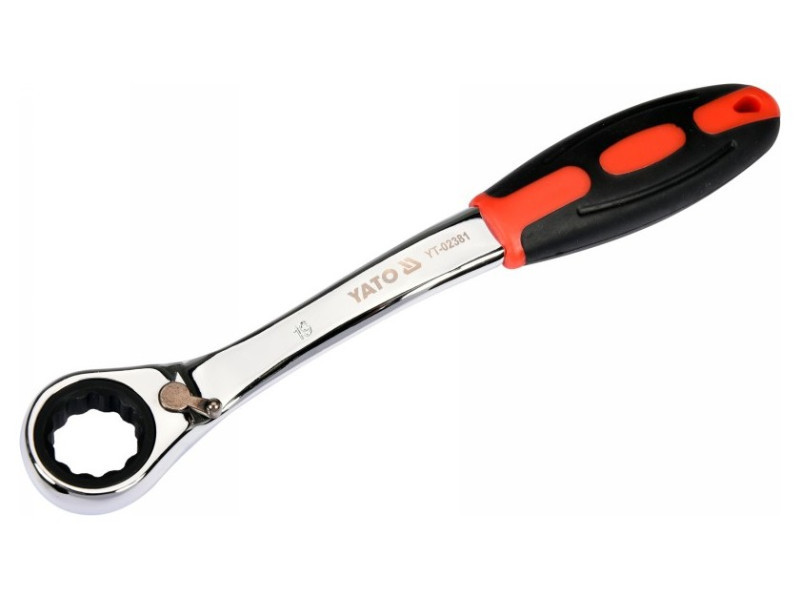 Kattancsos kulcs racsnival és hajlított profillal csavarok lazításához, autóipari szervizekhez ajánlott.