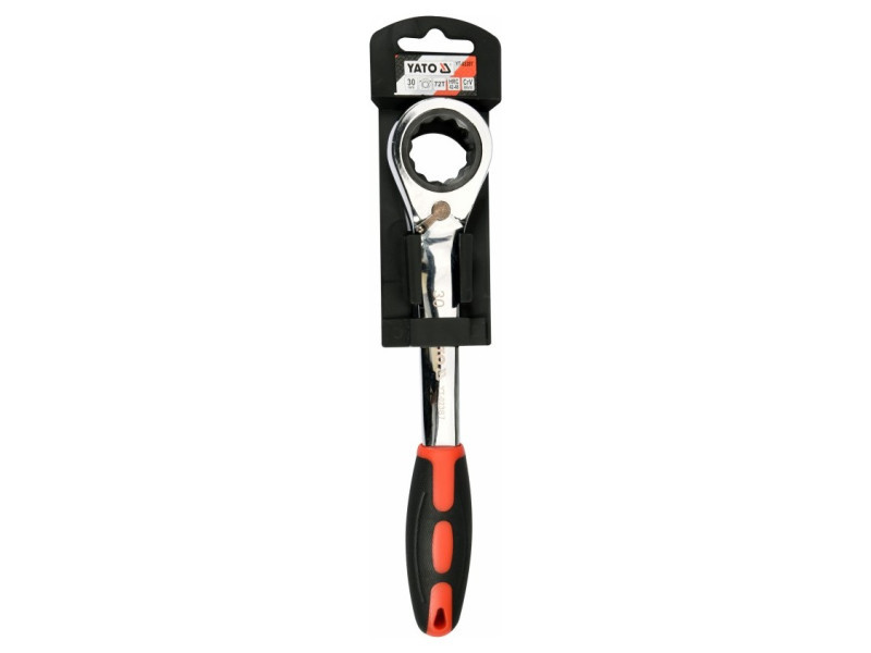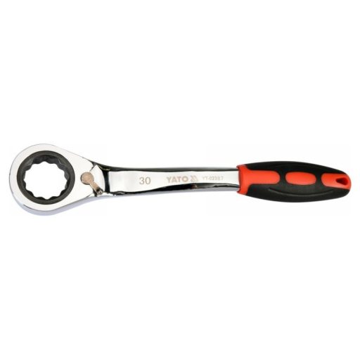 Kattancsos kulcs racsnival és hajlított profillal csavarok lazításához, autóipari szervizekhez ajánlott.