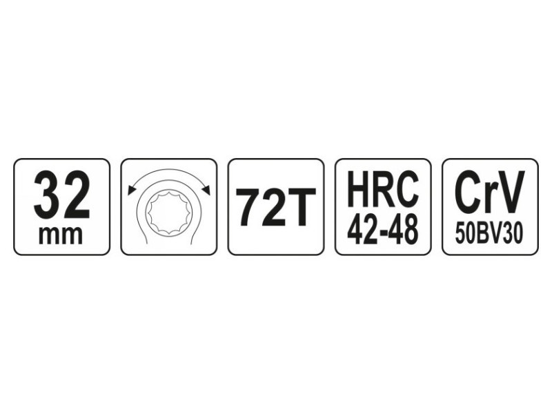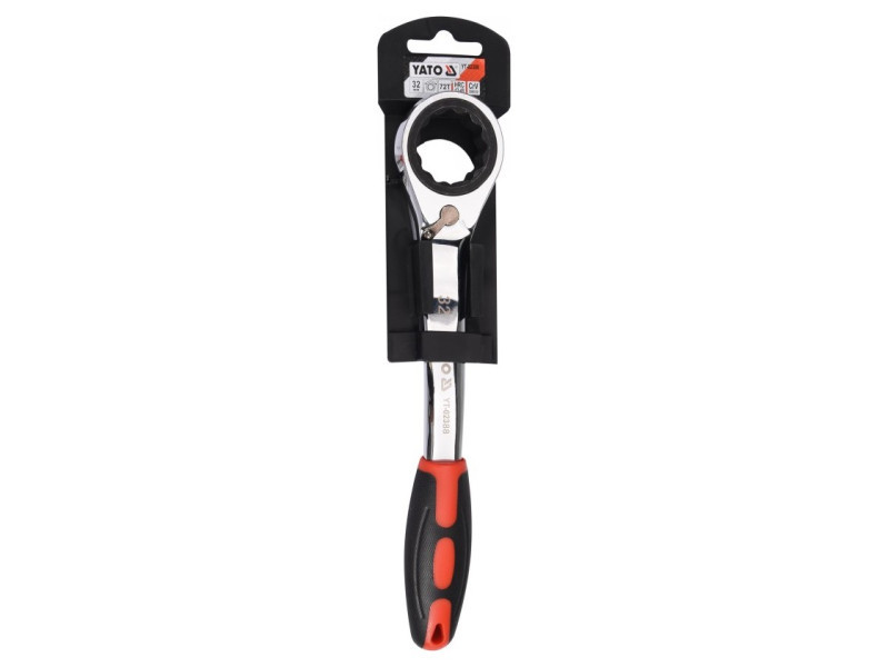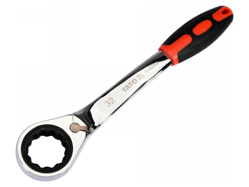 Kattancsos kulcs racsnival és hajlított profillal csavarok lazításához, autóipari szervizekhez ajánlott.
