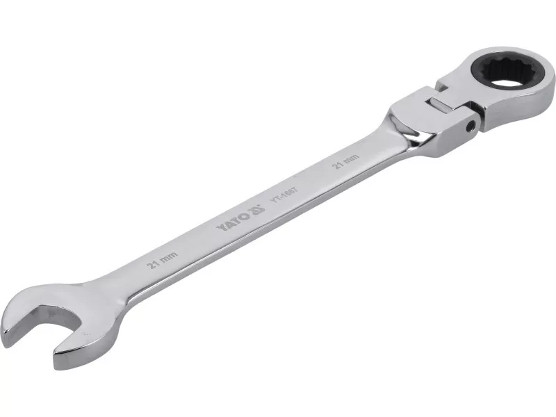 Kiváló minőségű, racsnis és csuklós gyűrűskulcs, amely alkalmas garázsok, szervizek és barkácsműhelyek számára.