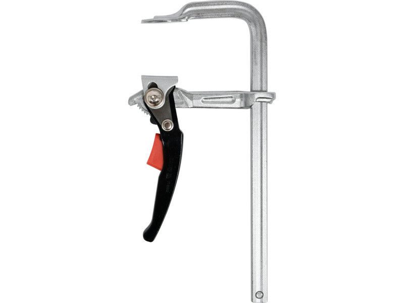Egy racsnis szorítómechanizmussal ellátott bilincs. Garantálja a nagyon erős, pontosan beosztott szorítónyomást a pofákon. Az acélszerkezet gyors, stabil szorítást biztosít, ellenáll a torziónak és a rezgésnek. A kovácsolt, profilozott vezetőrúd és a racsnis mechanizmus hatékony szóróként használható. Az anyagok gyors, pontos rögzítéséhez. Szerkezeti elemek szétfeszítéséhez . Professzionális alkalmazásokhoz az ácsmunkák, az építőipar, az acélszerkezetek és a hegesztés területén. Helyezze a pofákat az anyaghoz, és nyomja le erősen a kart. Egy gombnyomással kioldható.