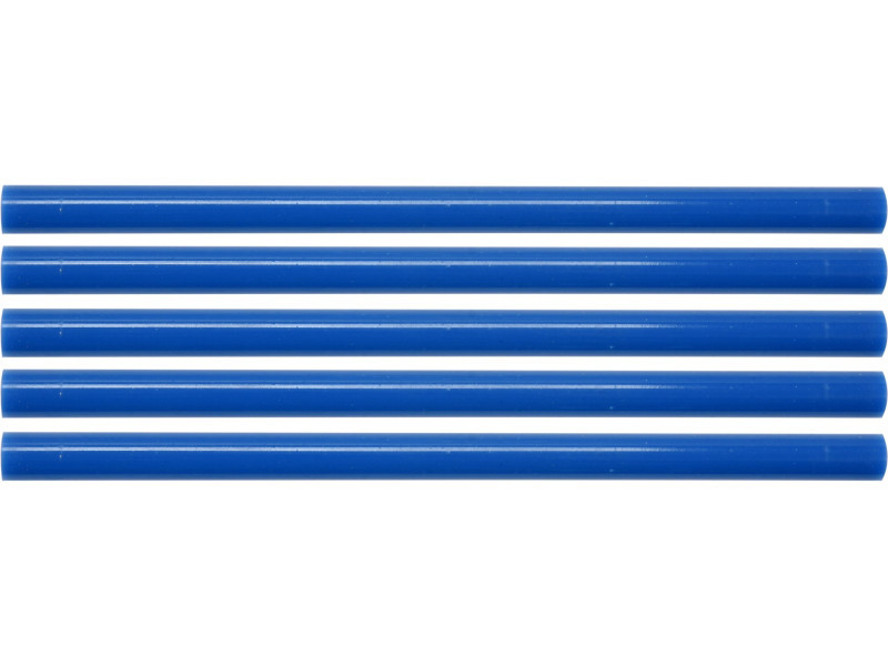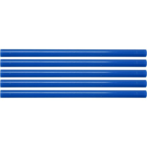 Többcélú, kék színű, 11 mm átmérőjű és 200 mm hosszúságúforróolvadék ragasztó. 5 db ragasztót tartalmaz egy csomag.