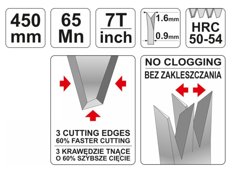 • Aggresszív vágás mindkét irányban speciális, háromoldalú fogprofilnak köszönhetően