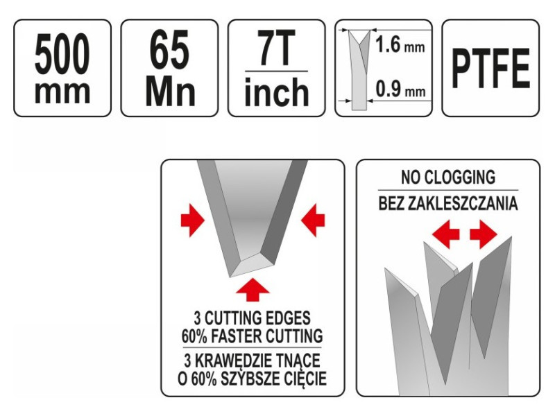 - nagy lemezmerevség és 7 tpi fogosztás a hatékony, gyors és pontos vágáshoz