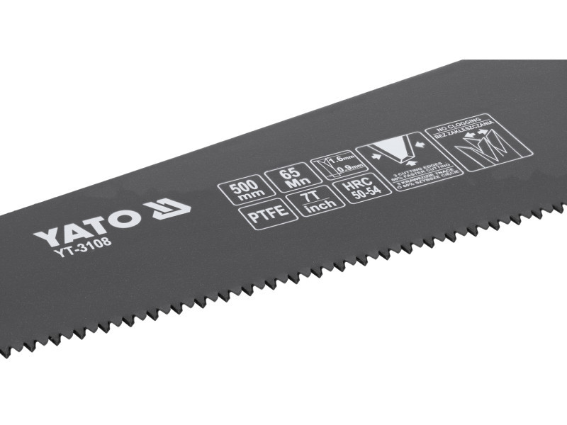 Yato márkájú 500 mm-es pelyhesítő fűrész, fa és faalapú anyagok, például rétegelt lemez, forgácslap, MDF vágásához.
