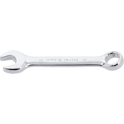 Yato márkájú rövid villáskulcs. 40CrV króm-vanádium acélból készült, hosszú élettartam jellemzi. A gyűrűskulcs hatszögletű vége, amely ráadásul ívelt, megkönnyíti a kulcs manőverezését.