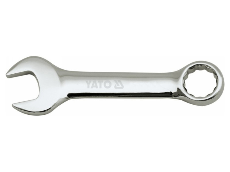 Yato márkájú rövid villáskulcs. 40CrV króm-vanádium acélból készült, hosszú élettartam jellemzi. A gyűrűskulcs hatszögletű vége, amely ráadásul ívelt, megkönnyíti a kulcs manőverezését.