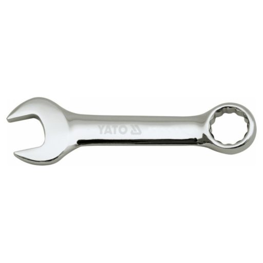 Yato márkájú rövid villáskulcs. 40CrV króm-vanádium acélból készült, hosszú élettartam jellemzi. A gyűrűskulcs hatszögletű vége, amely ráadásul ívelt, megkönnyíti a kulccsal való manőverezést.