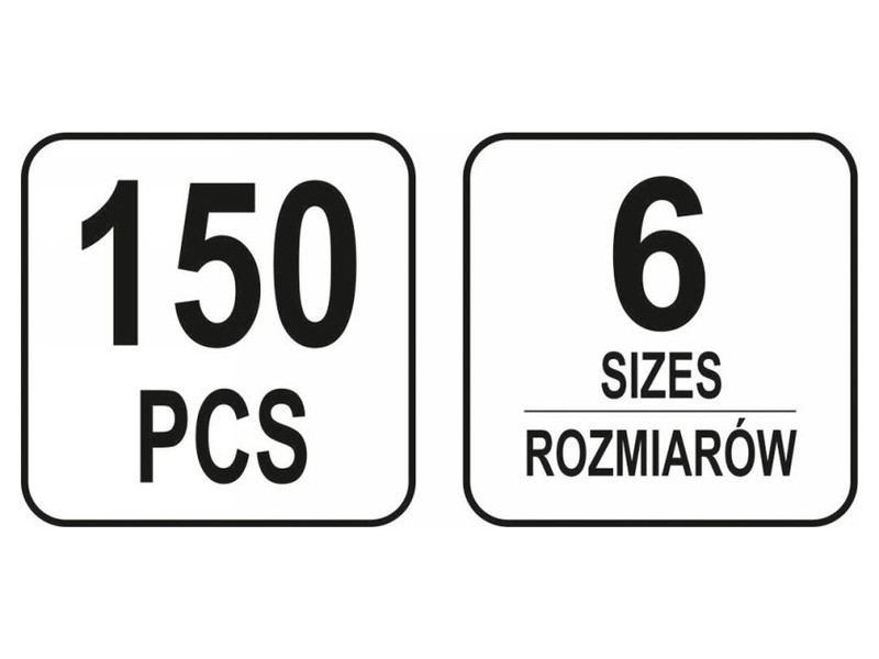150 darabos rugócsap készlet. A készlet 6 méretet tartalmaz 2,4x31 mm-től 4,0x75 mm-ig. Az egész készlet egy kényelmes válogató dobozban van elhelyezve.