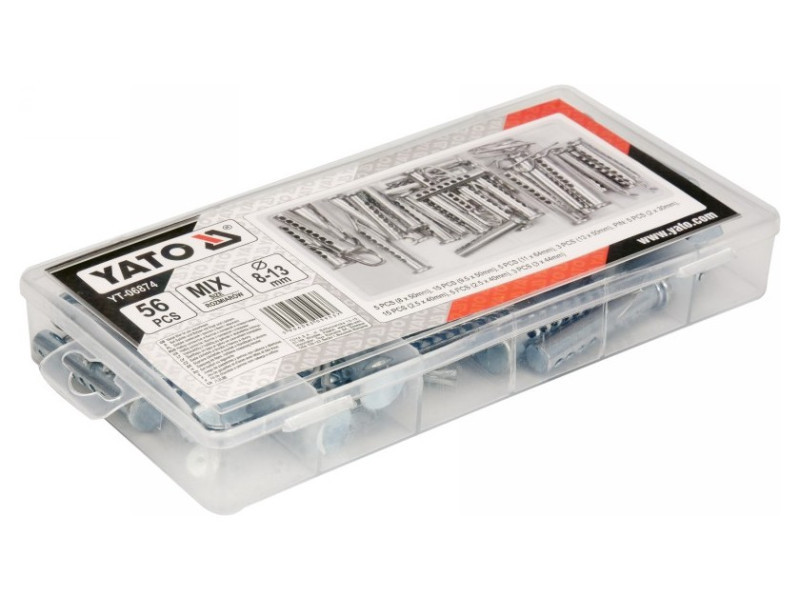 | Állítsa be a tartalmat | csapok x28 (O8x50 mm x5, O9,5x50 mm x15, O11x64 mm x5, O13x50 mm x3), csapok x28 (2x30 mm x5, 2,5x40 mm x20, 3x44 mm x3) |