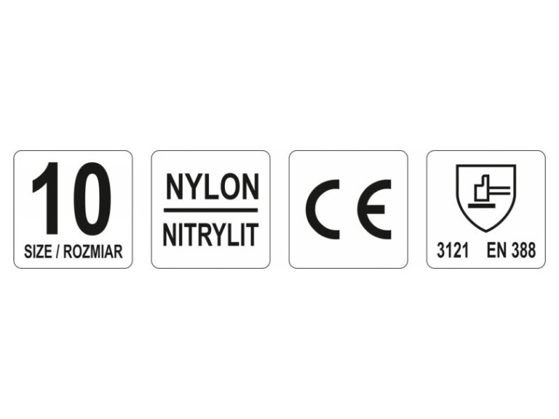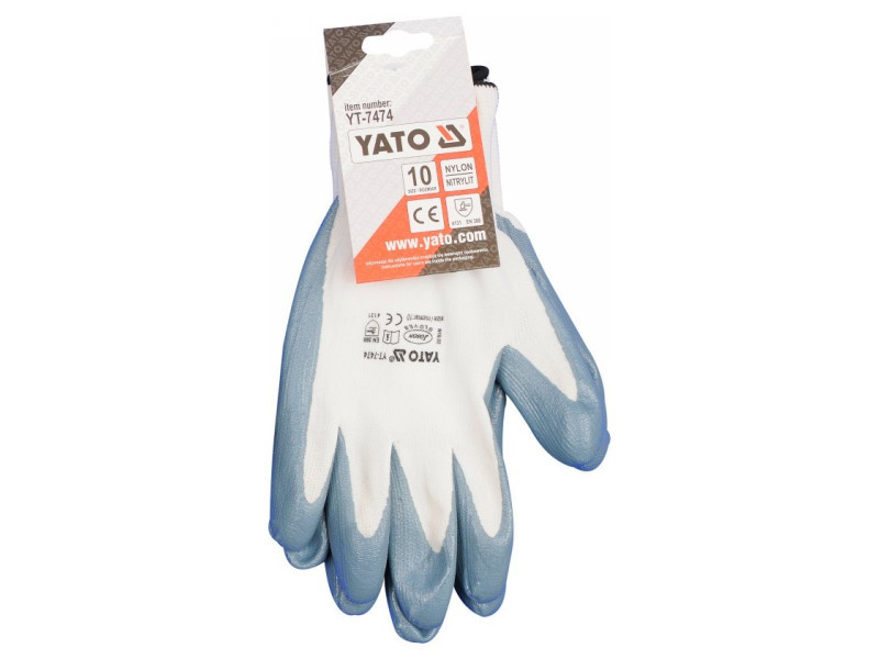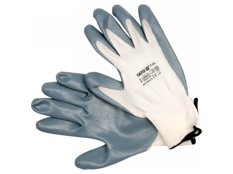Védő munkakesztyűk fehér nylonból készültek, a fogó részükön szürke nitrillel bevonva. Az EN 388 szabvány szerinti kopásállóság szinte legmagasabb szintjét biztosító megfelelően vastag bevonatréteg. A nitril további előnye a benzin, dízelolaj, paraffin, oldószerek, zsírok stb. ellenállása. A varratmentes nylon alapanyag jó szakítószilárdságot és hosszú távú rugalmasság megőrzését garantálja.