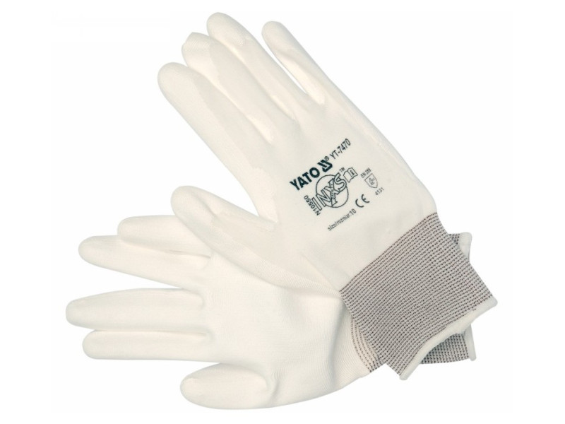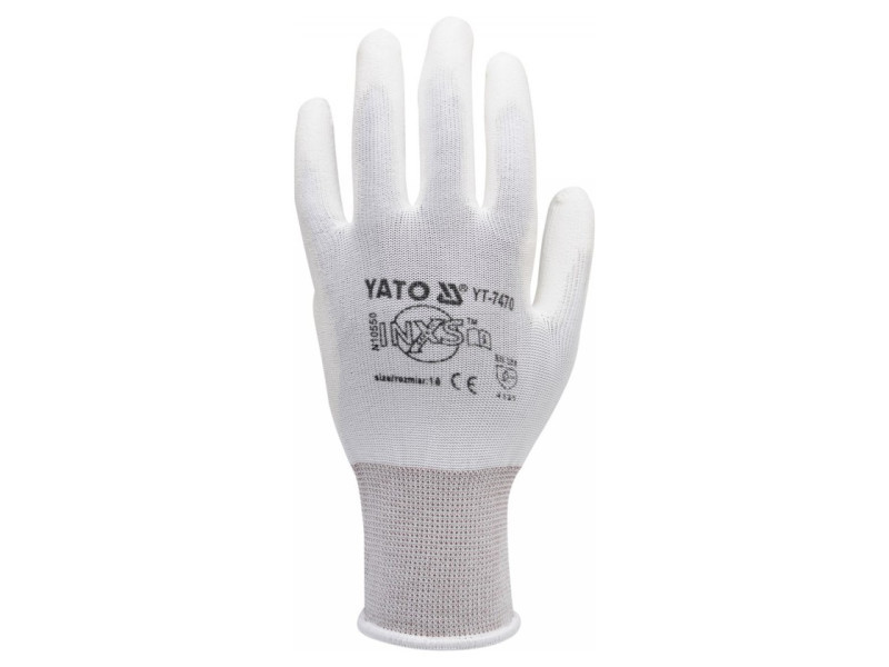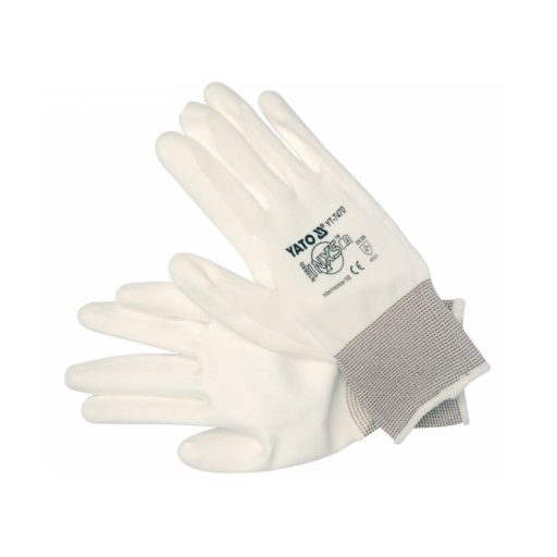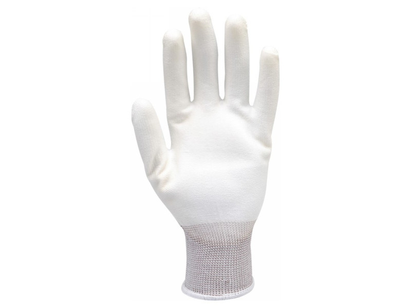 Fehér nejlonból készült munkavédelmi kesztyű, a markolat területén fehér poliuretán bevonattal. A szokásosnál vastagabb bevonat és a kiváló minőségű poliuretán a legmagasabb kopásállóságot biztosítja az EN 388 szabvány szerint. A kiváló minőségű nejlonból készült varratmentes kialakítás fokozott szakadásállóságot és a rugalmasság hosszabb ideig történő megőrzését jelenti. A finom 15G öltés, azaz 15 öltés hüvelykenként, kisebb súlyt és még jobb fogást jelent a kézben.