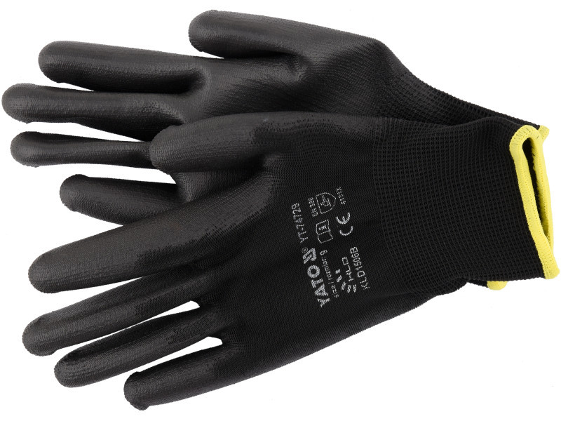 Biztonsági munkakesztyű fekete nejlonból, fekete poliuretán bevonattal a markolat területén. A szokásosnál vastagabb bevonat és a kiváló minőségű poliuretán a legmagasabb kopásállóságot biztosítja az EN 388 szabvány szerint. A kiváló minőségű nejlonból készült varrat nélküli kialakítás fokozott szakadásállóságot és a rugalmasság hosszabb ideig történő megőrzését jelenti. A finom 15G öltés, azaz 15 öltés hüvelykenként, kisebb súlyt és még jobb fogást jelent a kézben.