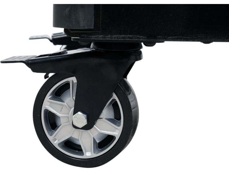 A stabil szerkezet négy görgőn nyugszik, amelyből kettő kormányzható és fékkel ellátott.