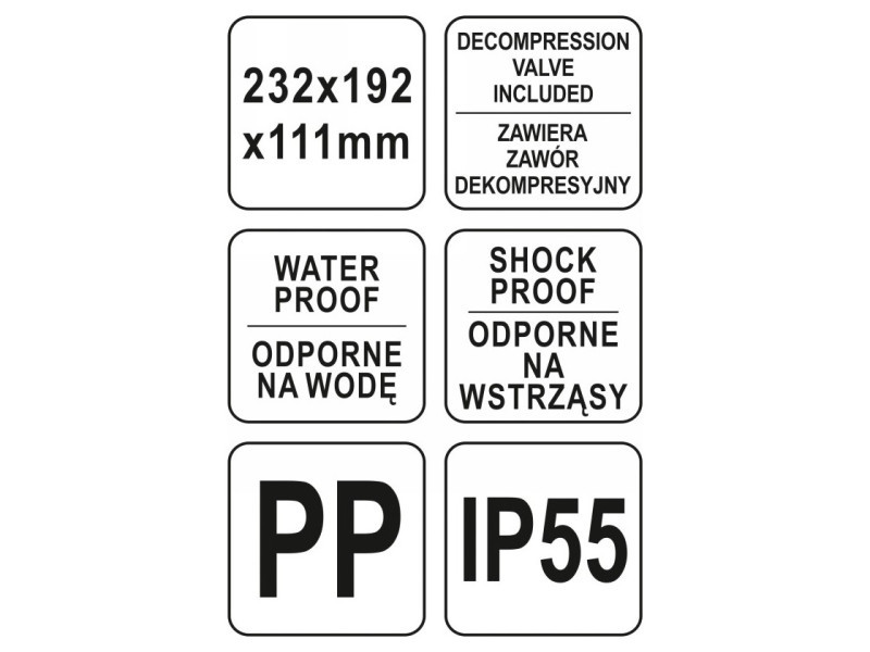 • Hatékony tömítőrendszerrel és dekompressziós szeleppel rendelkezik a légnyomás kiegyenlítésére légi szállítás során