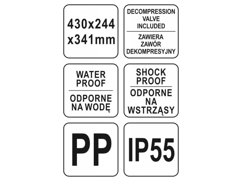 Légmentes, víz- és porálló tok, ellenáll számos vegyi anyagnak és korróziónak. Olyan berendezések szállítására és tárolására tervezték, amelyek különleges védelmet igényelnek a mechanikai sérülések, a nedvesség vagy a por negatív hatásai ellen.