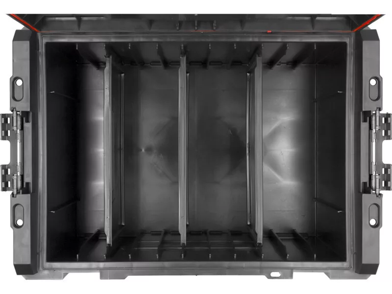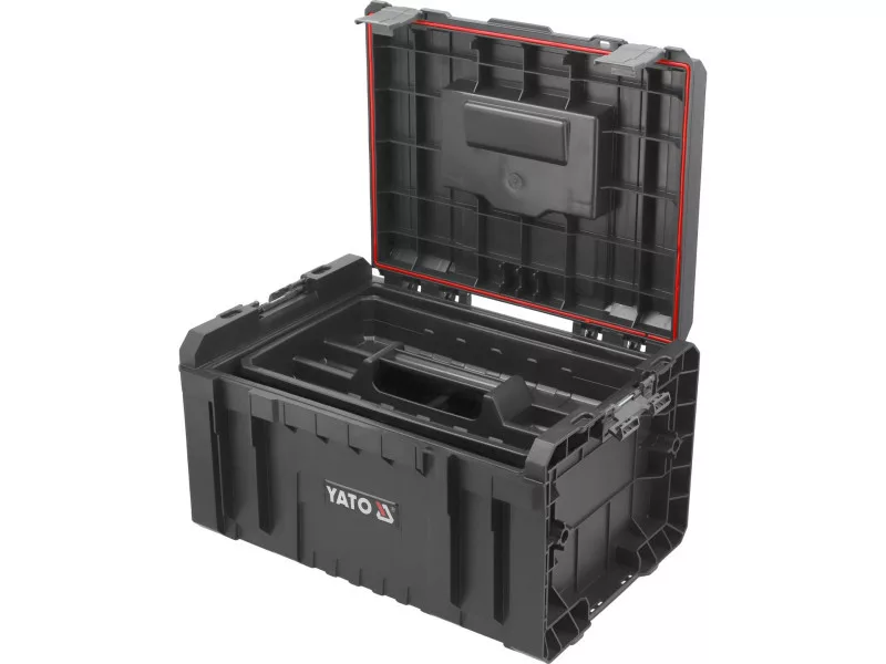 Egy tágas, moduláris szerszámosláda, amely már alapfelszereltségként igen gazdag felszereltséget kínál: 3 állítható osztóelem, egy tágas tálca és erős poliamidból készült, stabil rögzítőelemek és oldalsó csatlakozók.