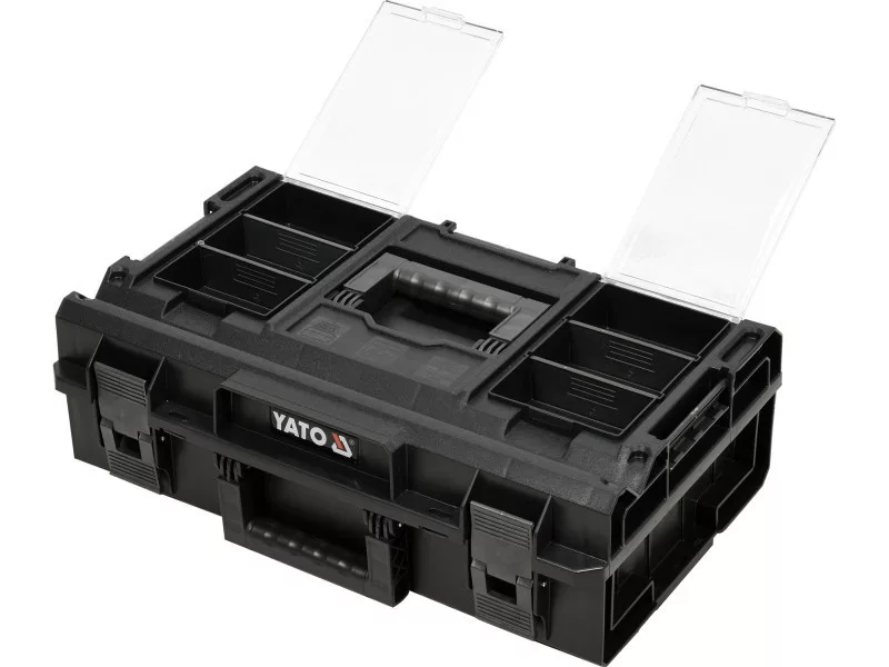 A többcélú doboz lehetővé teszi a szerszámok és kisebb tartozékok kényelmes tárolását és szállítását. Lehet az YT-09166 rendszer alapdobozára helyezhető modulok egyike.