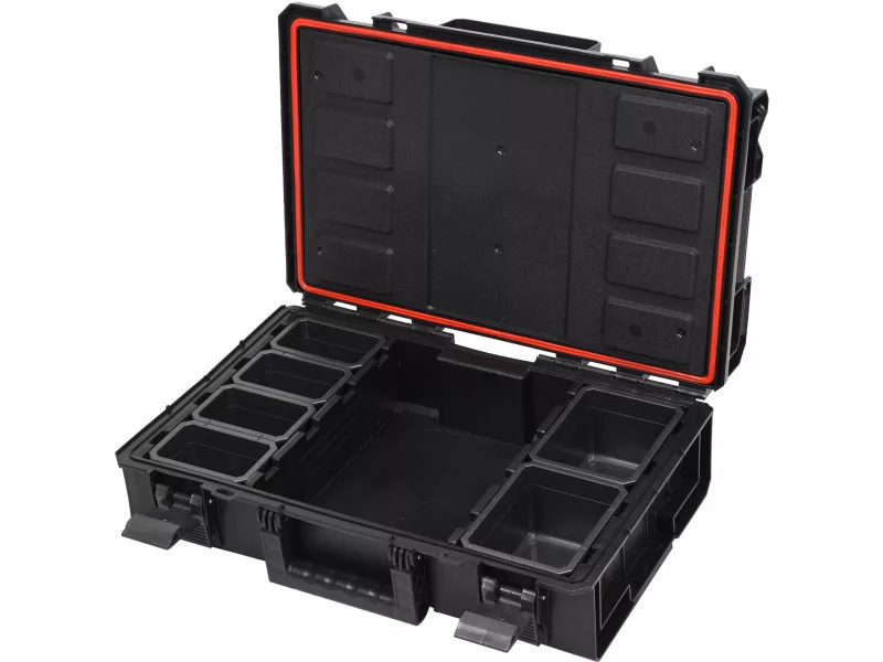 • rugalmas tömítés és robusztus reteszek védik a tartalmat a portól és a víztől