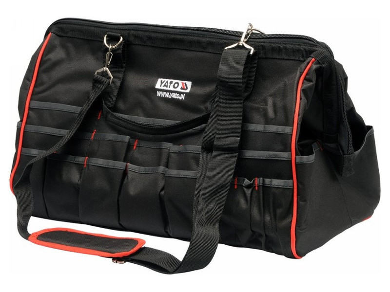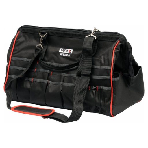 Praktikus YATO márkájú szerszámtáska továbbfejlesztett nejlonból, fémkapoccsal megerősített, zsanérokkal ellátott fémkapoccsal a könnyű nyitás és zárás érdekében. A praktikus és könnyen működtethető cipzárnak, valamint a számos zsebnek és rekesznek köszönhetően a táska ideális mobil szolgáltatásokhoz, műhelyekben, otthon, kertben.