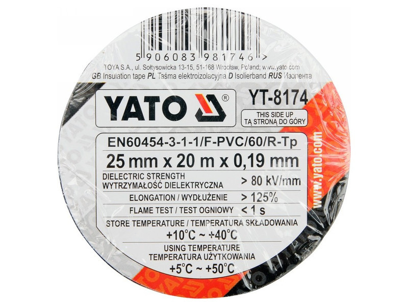 25 mm x 20 m x 0,19 mm méretű PVC elektromos szigetelőszalag: