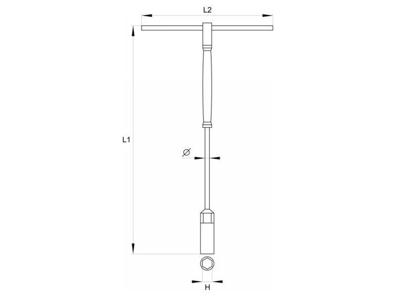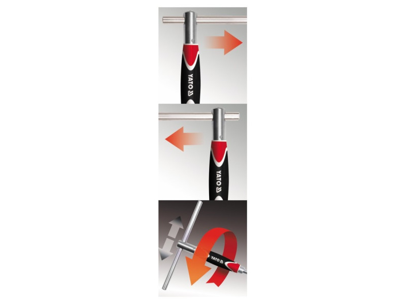 - T'' dugókulcskulcs ergonomikus fogantyúval és pozíciózárral ellátott csúszógombbal.