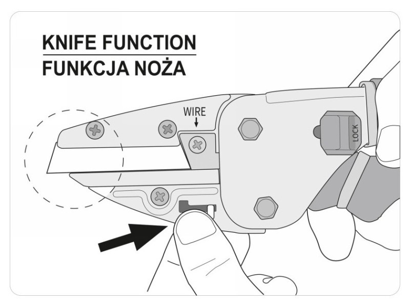- kiegészítő drótvágó penge Cr12Mo acélból, 58 - 62 HRC keménységgel.