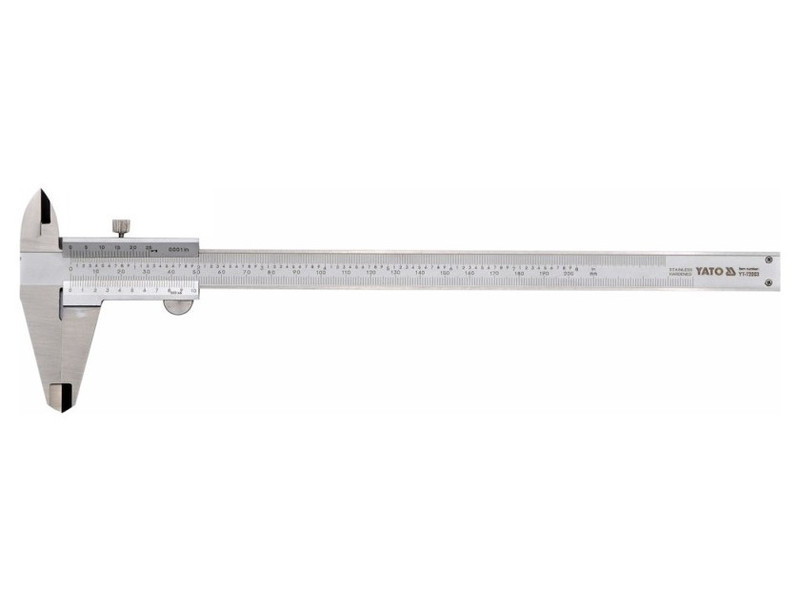 A rozsdamentes acélból készült klasszikus mérőkalauz 0-300 mm közötti méréseket tesz lehetővé 0,02 mm pontossággal. Az egyértelmű és jól olvasható beosztás hozzájárul a pontossághoz és a jelzett értékek könnyű leolvasásához. Az egész egység egy robusztus és praktikus tokban van elhelyezve. Lehetővé teszi a külső, belső, magassági és mélységmérést.