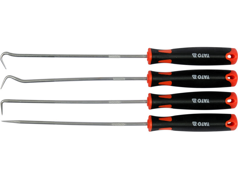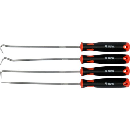 Kampókészlet fogantyúval. A horgok 40 CR acélból készült, edzett és krómozott pengékkel rendelkeznek. A fogantyúk kétkomponensű műanyagból készültek a biztos fogás érdekében.