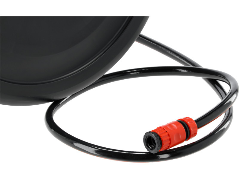 Az automatikus feltekerő rendszer megkönnyíti és gyorsítja a tömlő eltekerését az öntözés befejezése után, megakadályozza annak összegubancolódását és csomózódását, valamint rendet tart a kerti eszközök között. A falra szerelés és a tömlő teljesen elrejtése a hordóban több helyet hagy a garázs vagy a ház előtti padlón való tároláshoz.