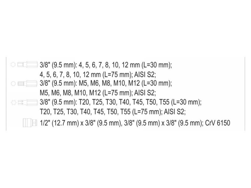YATO Torx és imbusz bit készlet 40 részes (1/2"-3/8" H4-H12, M5-M12, T20-T55)