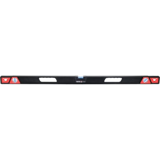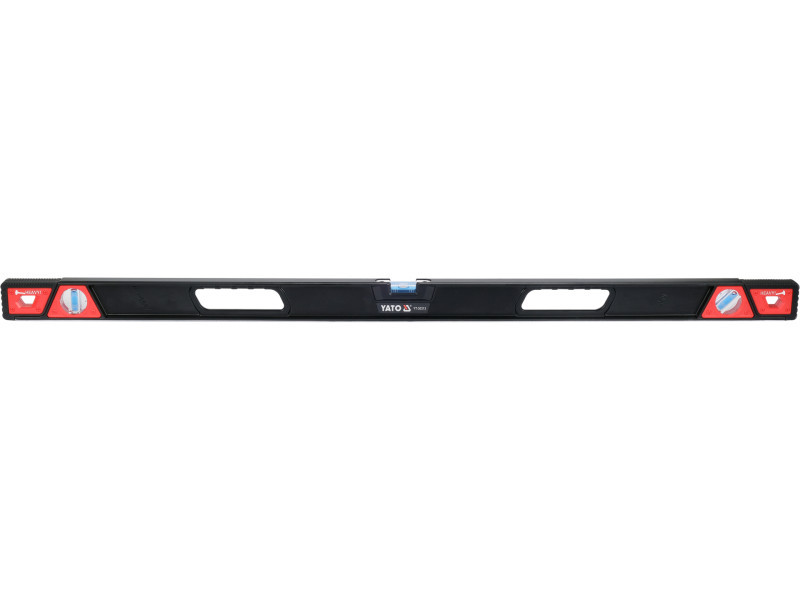 Robusztus, ütésálló alumínium vízmérték. Két nagy fogantyú megkönnyíti a mérést. A vízmérték rugalmas, ütésálló ütközésálló ütközőkkel védett végei lehetővé teszik a kalapáccsal való ütögetést. A vízmérték három fiolával van felszerelve: függőleges, vízszintes, 45 fokos. A maratott talpazat 5 mágnessel rendelkezik.