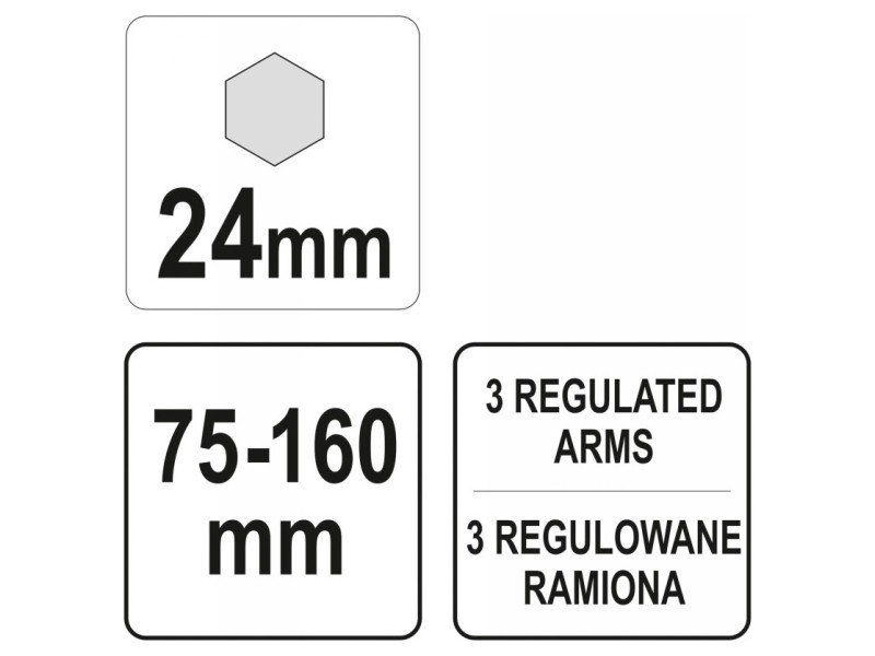 Professzionális állítható karmos kulcs üzemanyagszivattyúkhoz és a tartályba épített üzemanyagszint-érzékelőkhöz. A három kar munkatartománya 75 mm és 160 mm között van.