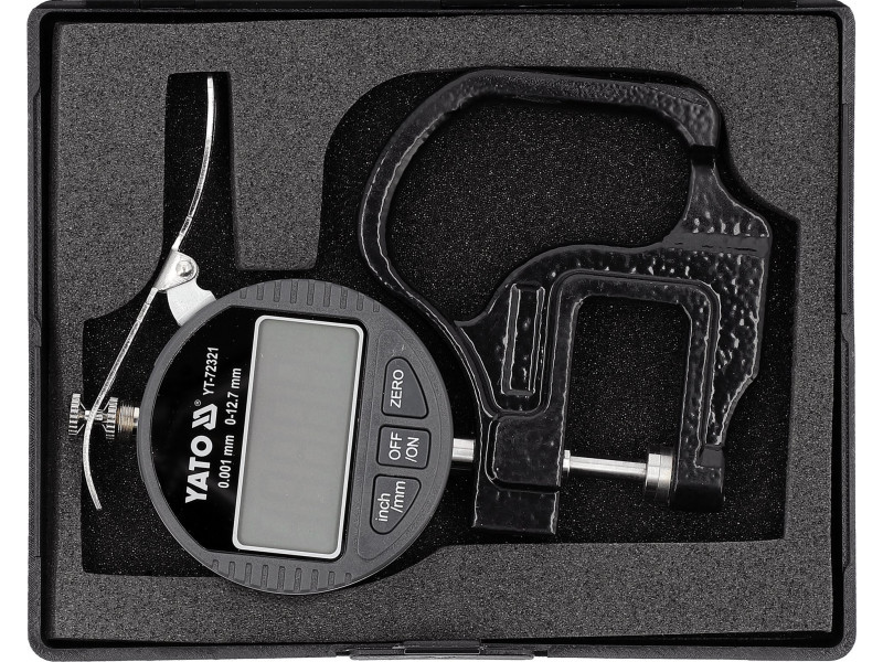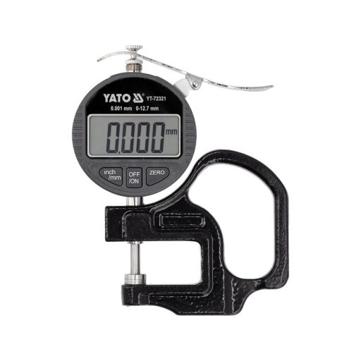 Elektronikus vastagságmérő ±0,001 mm pontossággal, mely precíz mérőeszköz különféle anyagok vastagságának meghatározására szolgál, mint például fémlemezek, táblák, lapok, papír, műanyag vagy üveg. Ideális használatra műhelyekben, mérő laboratóriumokban és minőségellenőrzésnél, ahol a mérés pontossága és ismételhetősége számít.