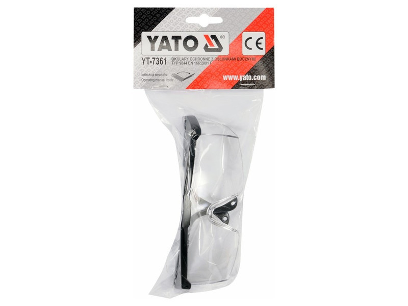 A népszerű YT-7361 védőszemüveg a szem védelmére szolgál kézi és mechanikai munkák, pl. csiszolás, fúrás, vésés stb. során.
