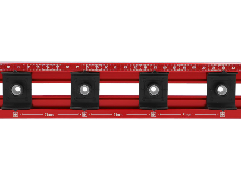 Alkalmazásvízmérték hordozhatósággal és távolságjelöléssel a mérőskálán lévő négy jelölőcsúszka segítségével