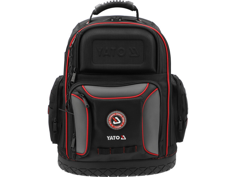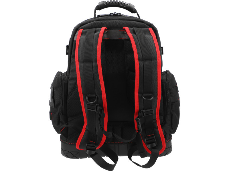 Praktikus és nagyon strapabíró hátizsák magas minőségű megerősített nylonból készült. Kiválóan alkalmas a munkához szükséges eszközök szállítására. Számos extra zseb lehetővé teszi a szerszámok és kiegészítők szétválogatását és rendben tartását, valamint értékes felszerelés, mint például pénztárca, telefon, dokumentumok, biztonságos tárolását zárható rekeszben.